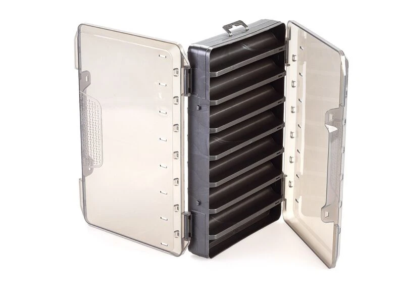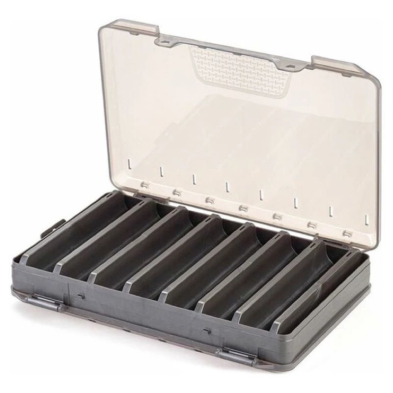 De CAMO Lures Hardbait Box Large heeft 15 v-vormige compartimenten voor hardbaits (max. 15,5 cm lang). De deksels zijn voorzien van kleine ventilatiegaten zodat de wobblers gemakkelijk drogen in de box.