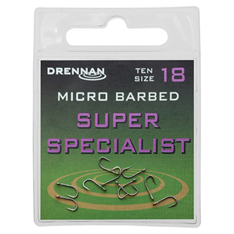 Super Specialist Micro Barbed haken zijn gemaakt van extra sterk high carbon staal. Hun taaiheid en betrouwbaarheid voor het haken en landen van grote vissen is legendarisch.