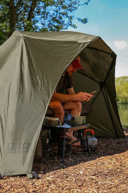 De Fox Easy Brolly is een lichtgewicht en minimalistische brolly met 8000 waterkolom. In een handomdraai opgezet voor korte vistrips of voor wie lichtere spullen wil meenemen!