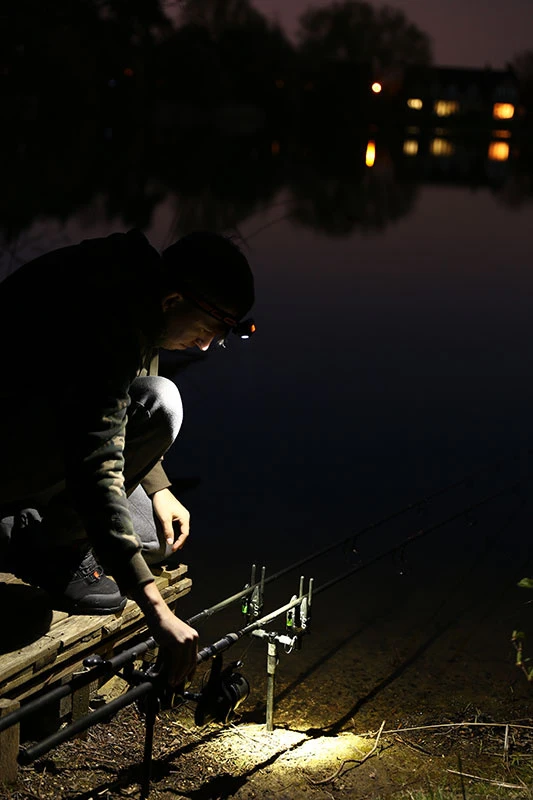 Fox Halo 200 Headtorch is een praktische hoofdlamp die perfect is voor het vissen in het donker.