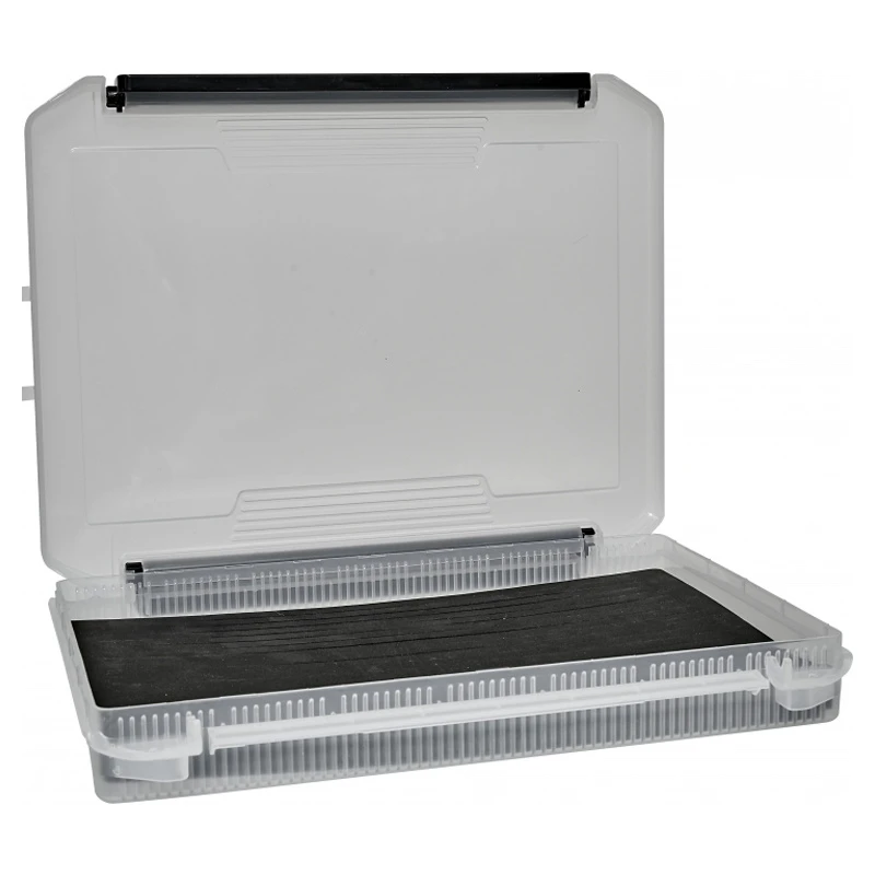 Gunki Rig & Hook Box Open Sides geeft u een slimme opslag voor jigkoppen, rigs en kleiner aas met een geribbelde schuimplaat.