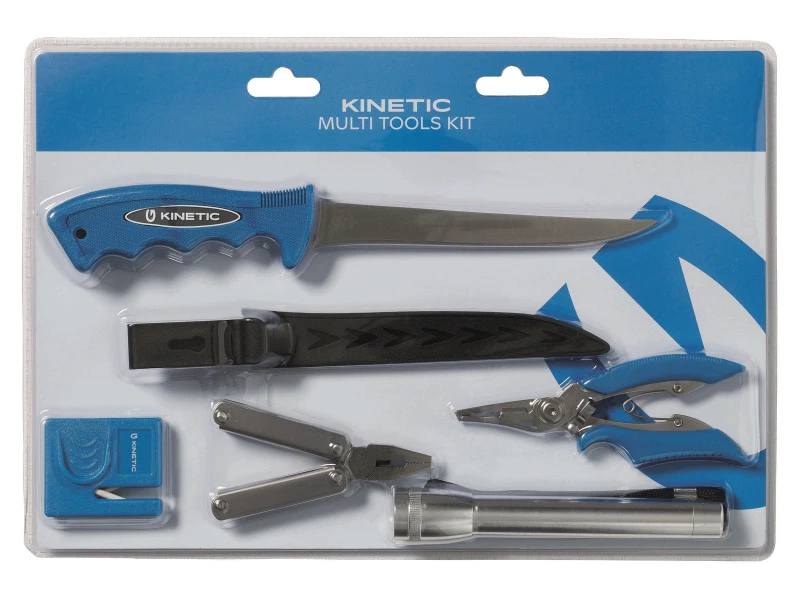Deze 5-delige multi tool kit bestaat uit essentiële zaken die in de boot of tacklebox van elke visser thuishoren. Batterijen niet inbegrepen.