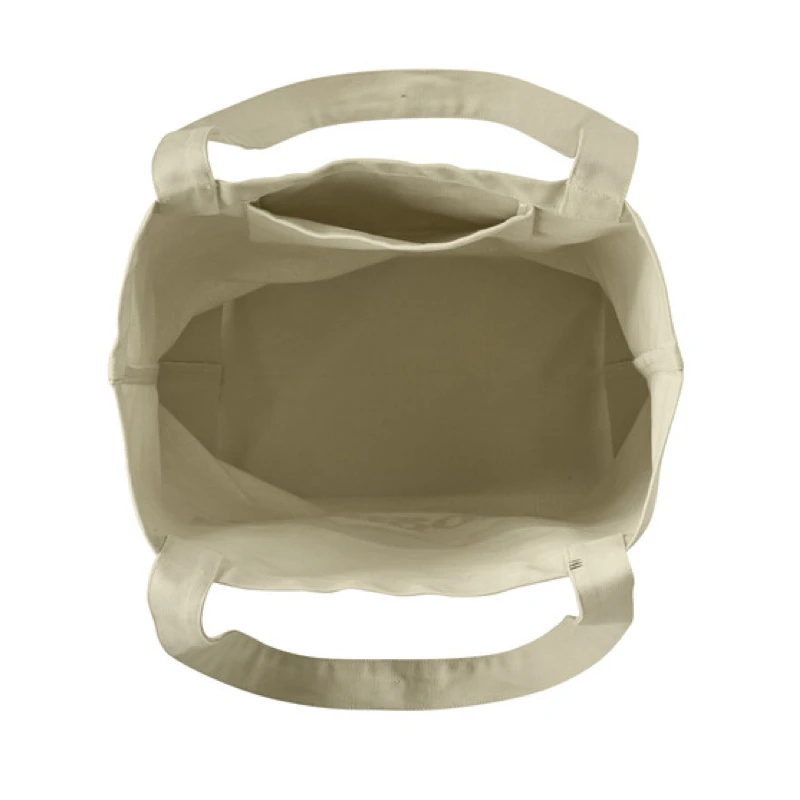 Deze herbruikbare tas is gemaakt met behulp van een proces dat de hoeveelheid afvalstof vermindert die bij de productie ontstaat. Fair Trade gecertificeerd genaaid.