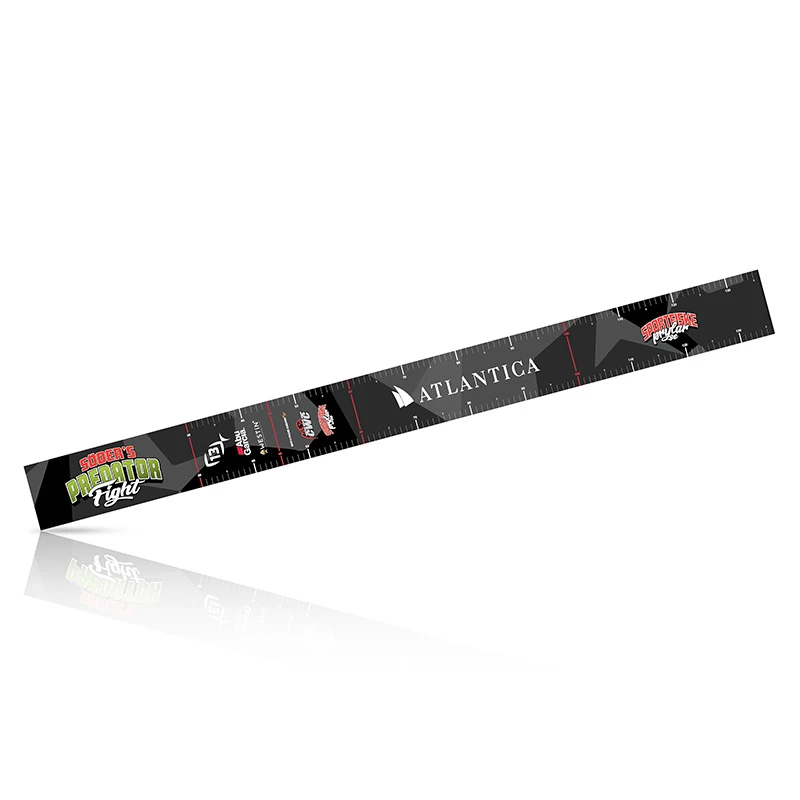 De officiële meetsticker gebruikt door de teams in Predator Fight! Duidelijke markeringen voor goedgekeurde vissen volgens de regels van de wedstrijd; 30cm baars, 45cm snoekbaars, 60cm snoek. Totale lengte: 135cm.
